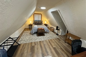 This is a comfortable 1950’s cabin with a bedroom and sleeping loft upstairs and a full kitchen, bath, living room, dining room, bedroom and sitting room on the main floor. Come visit with the whole crew - friends, parents, kids, grandparents and even your dog is welcome here!